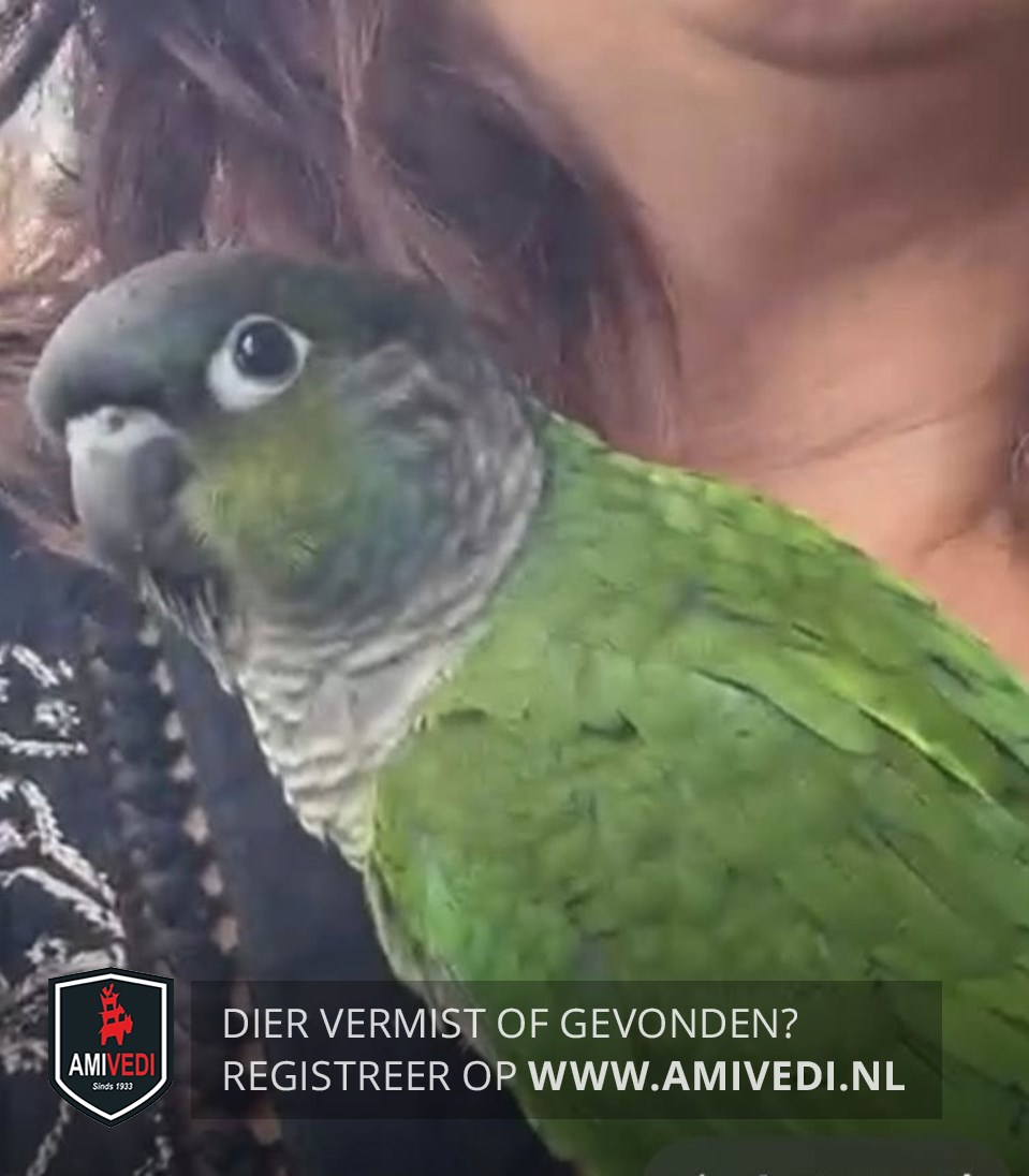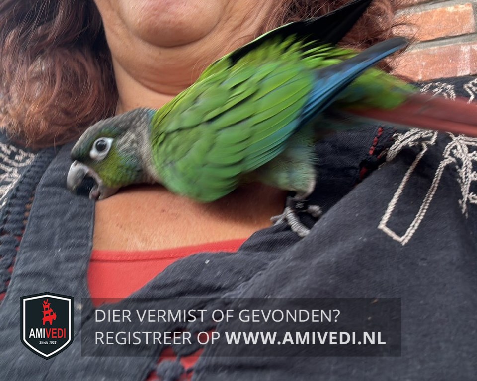 Signalement | Groen met op het kp[je donkerder erg tam |