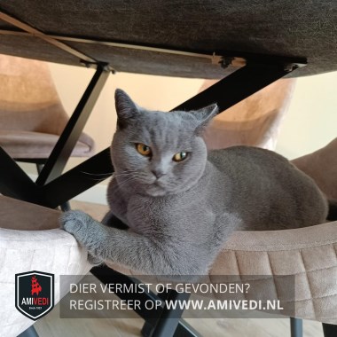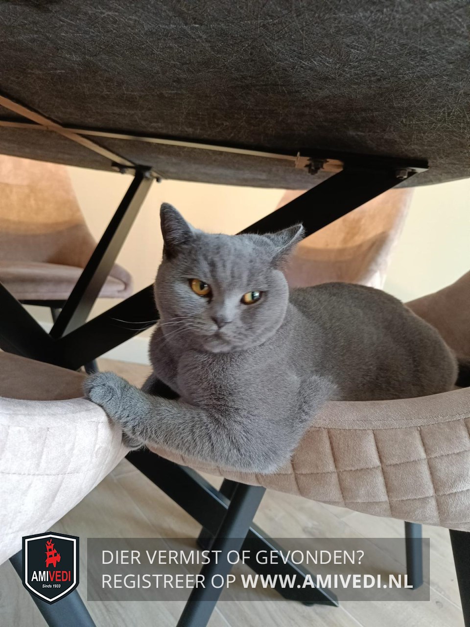 Signalement | Geheel grijs, amberkleurige ogen. |