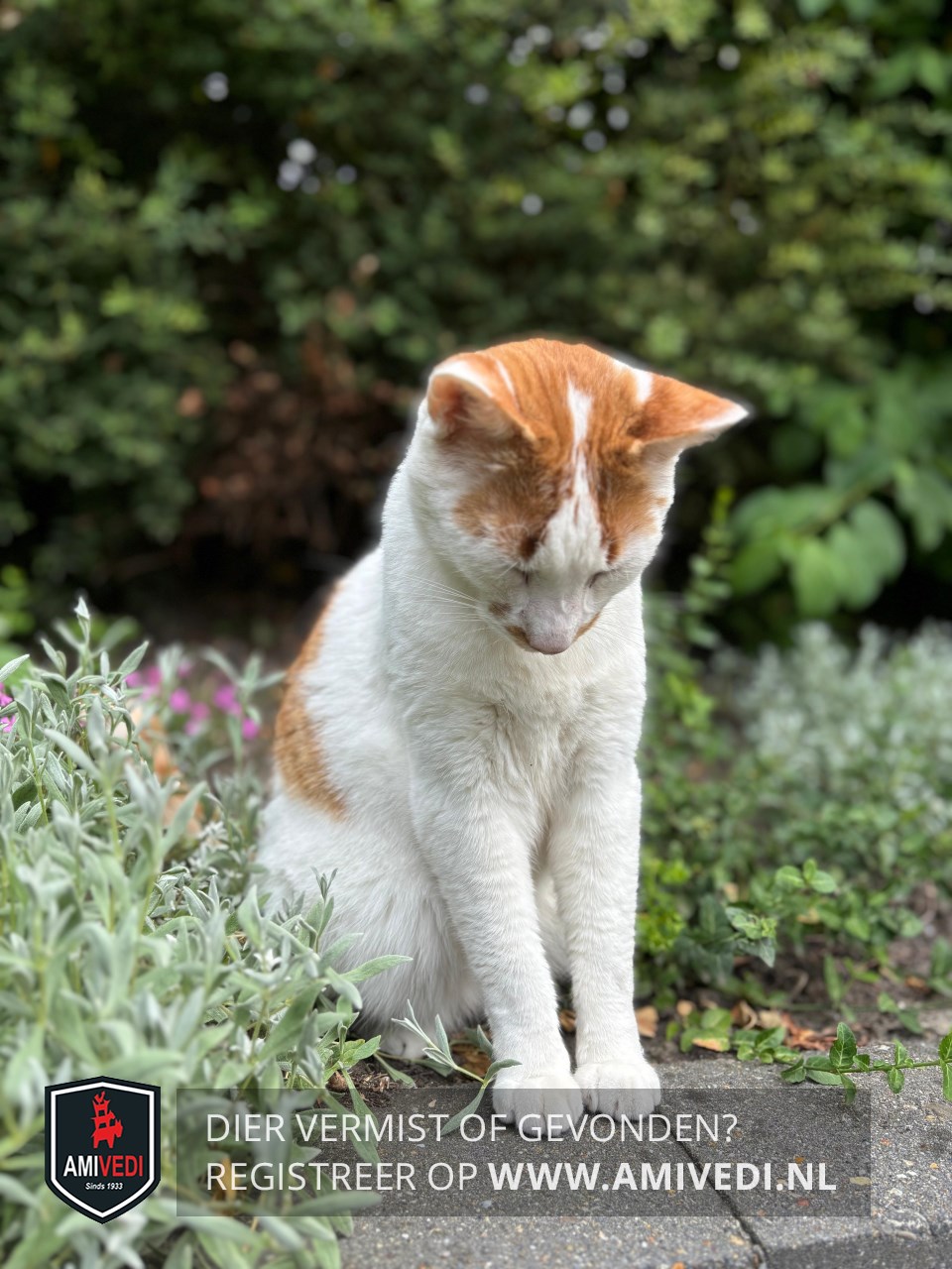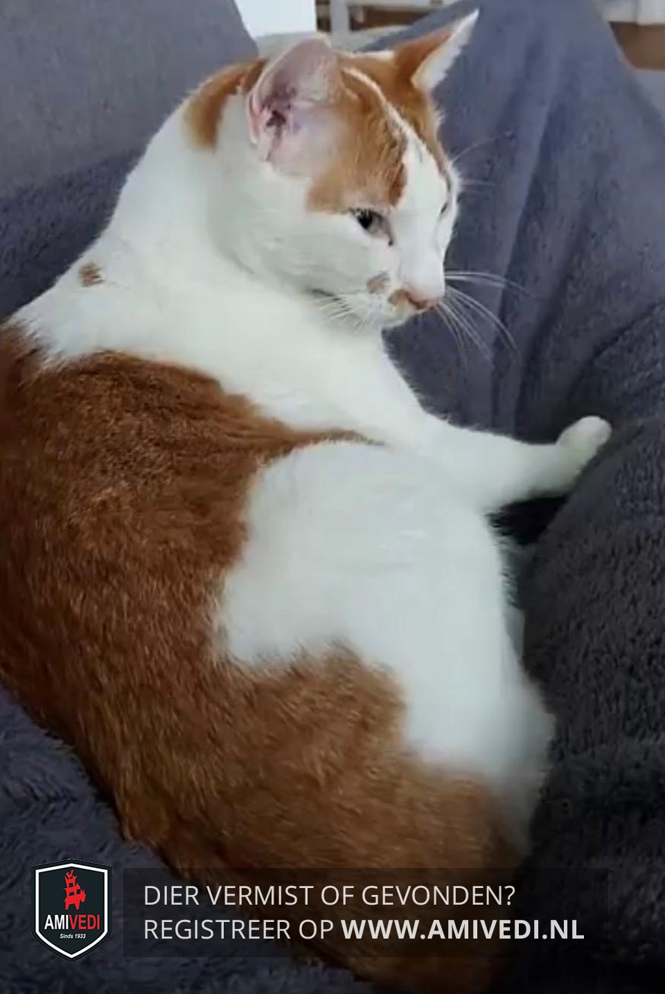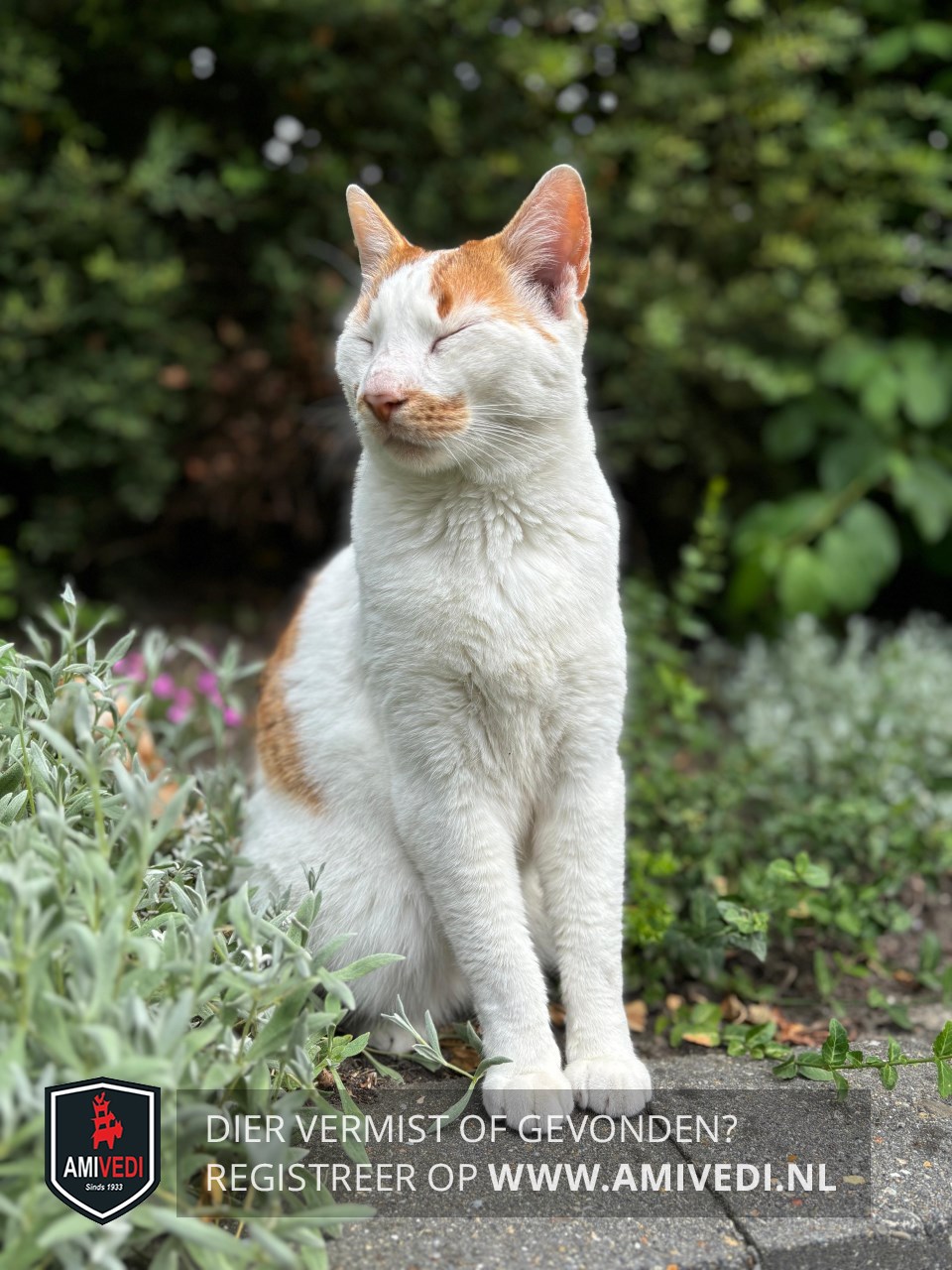 Signalement | Rood met wit op de kop en oren, in het aangezicht wit. Links van de neus een rode vlek, aan de rechterzijde een heel klein rood vlekje. Groene ogen, rossig neusje en witte tast -en snorharen. Vanaf de kin, hals verder geheel wit. Geheel rode rug. |