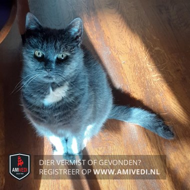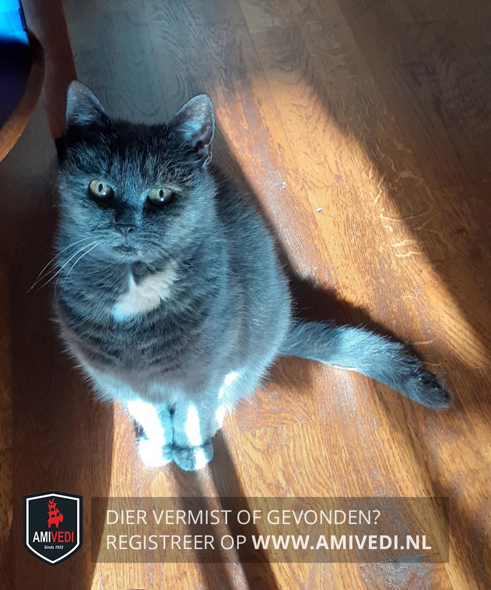 Signalement | Grijs wit - Kat op leeftijd is doof en blind, en verward Heeft een witte borstvlek en witte voetjes achter. Voor het laatst gezien op een veldje aan Ln. van Zevenhuizen/Agricolstraat |