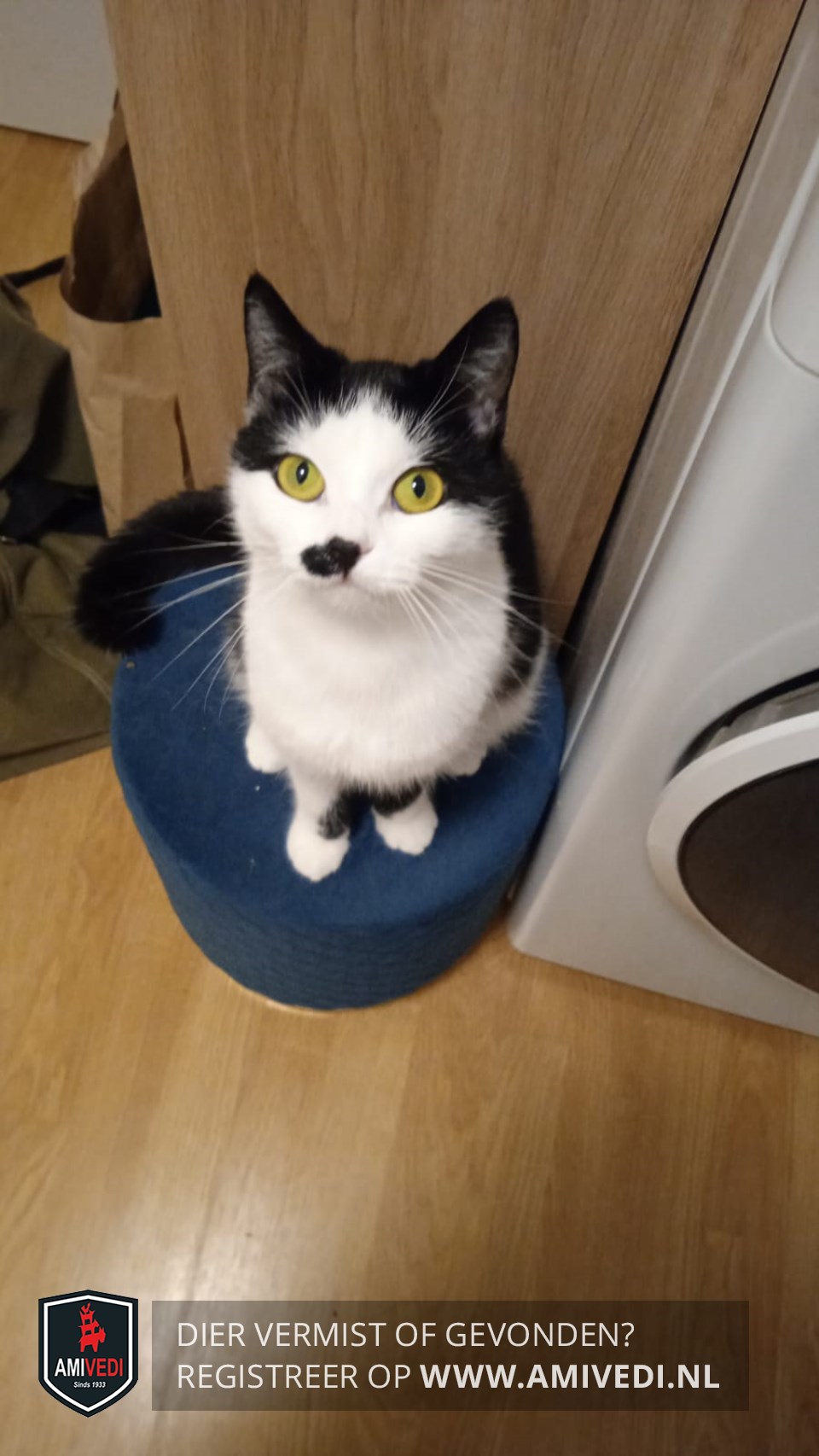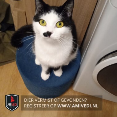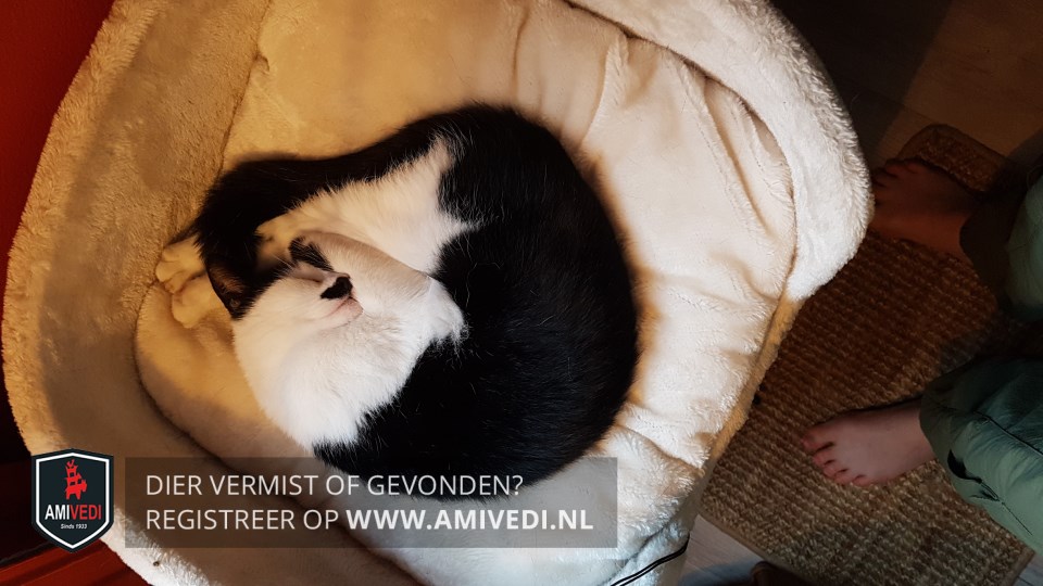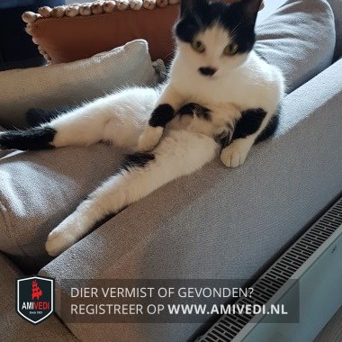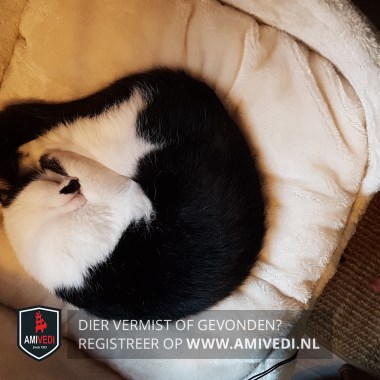 Signalement | Lotje heeft een zwarte rug en staart en een witte buik en pootjes. Haar oortjes zijn zwart maar haar gezichtje is wit en ze heeft een zwart half 'snorretje'. Ze is wat klein van stuk, dus kan als onvolwassen kat aangezien worden. Heeft speciaal voer, door blaasprobleem |