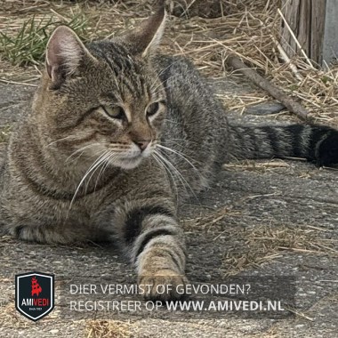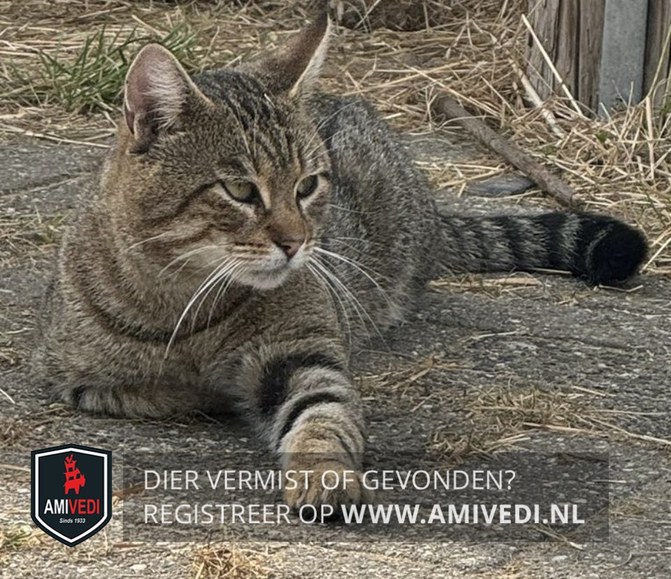 | Signalement | Zwart/Grijs/Bruin gestreept. |