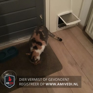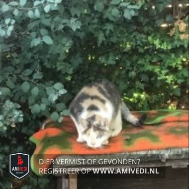 | Signalement | Lapje, wit met rood-beige-zwart gevlekt op kopje en rug, met zwart topje aan staart. Mist rechter oog. |