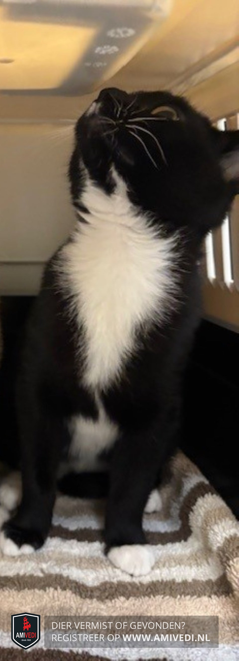 | Signalement | Zwart met wit: beetje onder de neus, bef in een streep doorlopend naar borst en buik, voor teentjes en achter halve laarzen. |