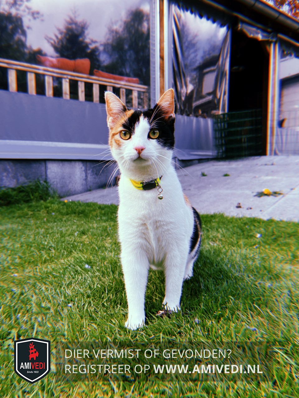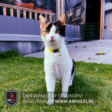 | Signalement | Wit, rood boven en naast rechter oog en zwart boven en naast linker oog, rode oortjes, zwart met rood gevlekt op rug en staart. |