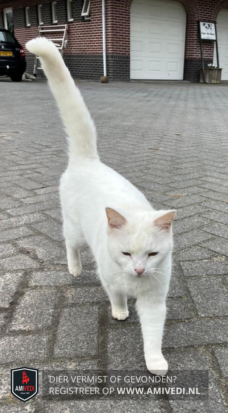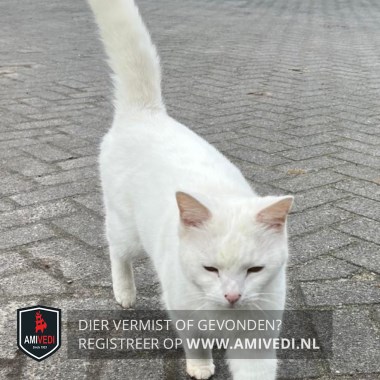 | Signalement | Geheel witte poes. Heeft nog een litteken, maar die valt niet op. |