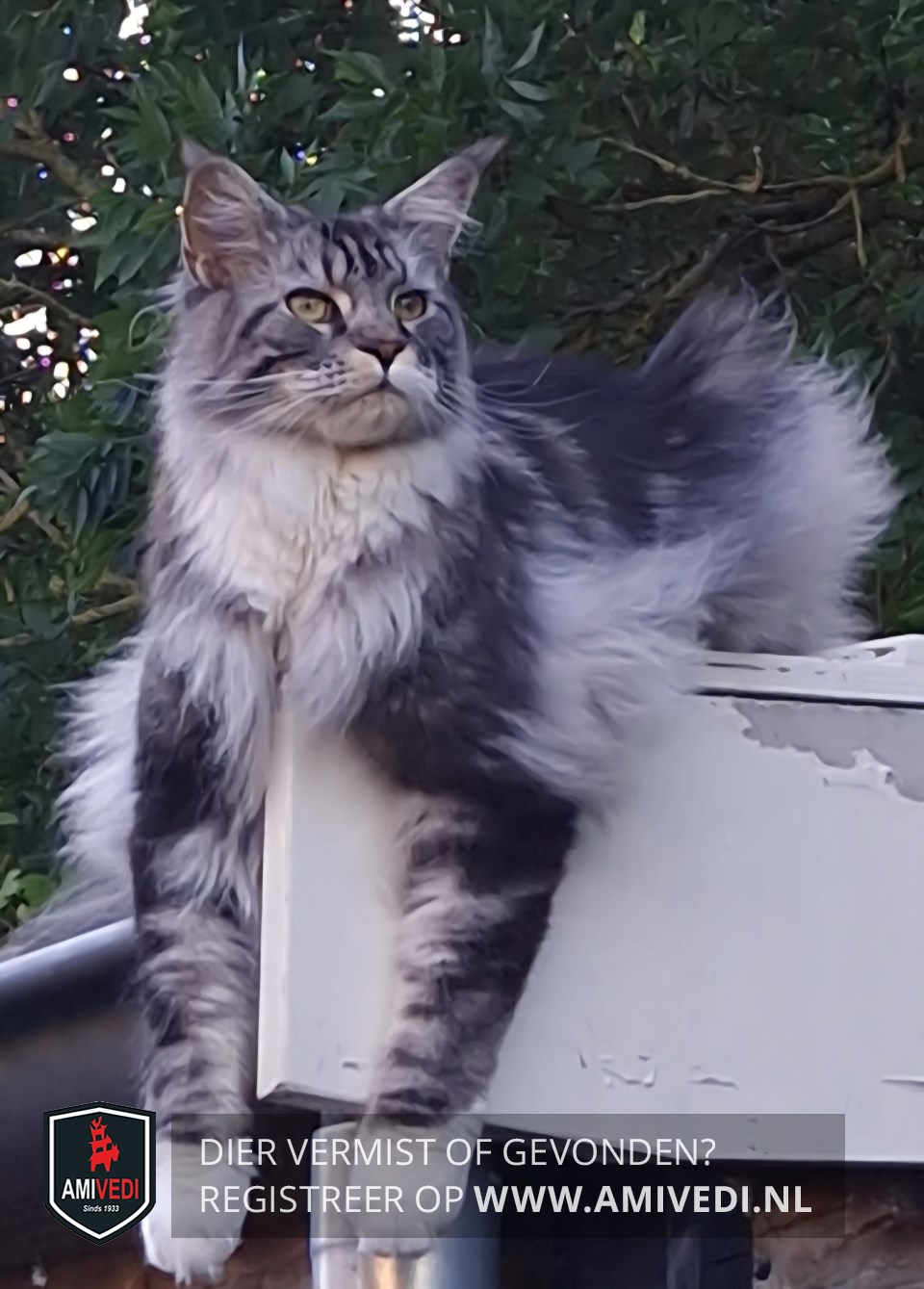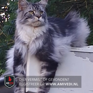 | Signalement | Cypers grijs/bruin/zwart gezichtje, wit snorretje, witte bef. Het lijfje is langharig grijs/zwart/wit gemêleerd. Aan een zijde lichte oranje tinten. Witte sokjes, dikke pluimstaart. Luistert ook naar de naam Zellie. |