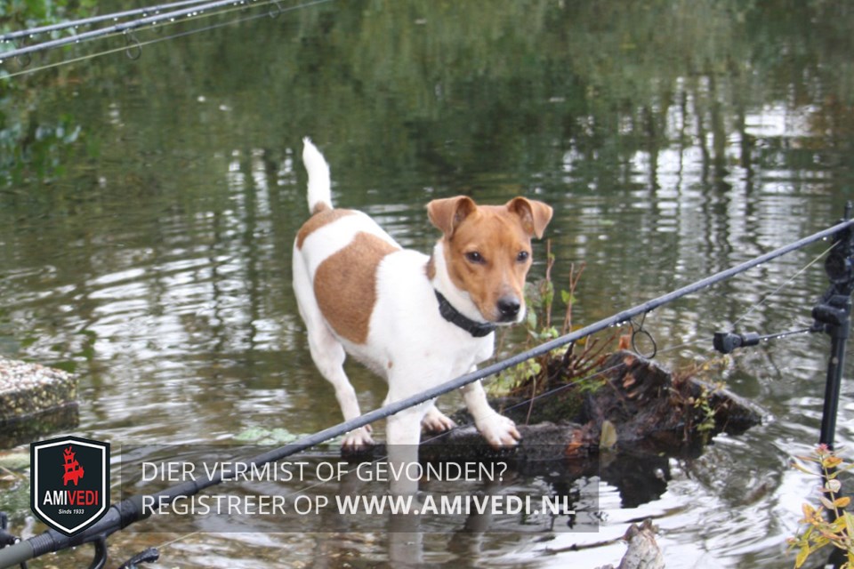 | Signalement | Jack Russel, wit met bruine vlakken: bruin over de kop, vlak in de hals, groot vlak op rug en flanken en rond de staart. Verder wit. |