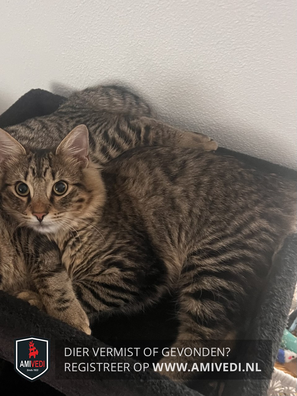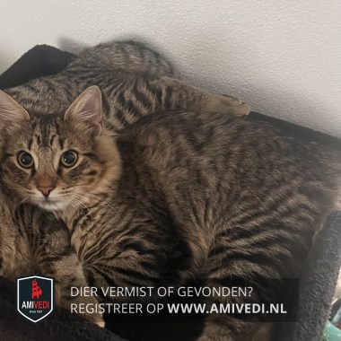 | Signalement | Cypers bruin/grijs/zwart katertje, bruin neusje, wit rond het bekje. Zijn haren zijn wat korter geknipt, maar hij heeft een volle staart. Rood halsbandje. |
