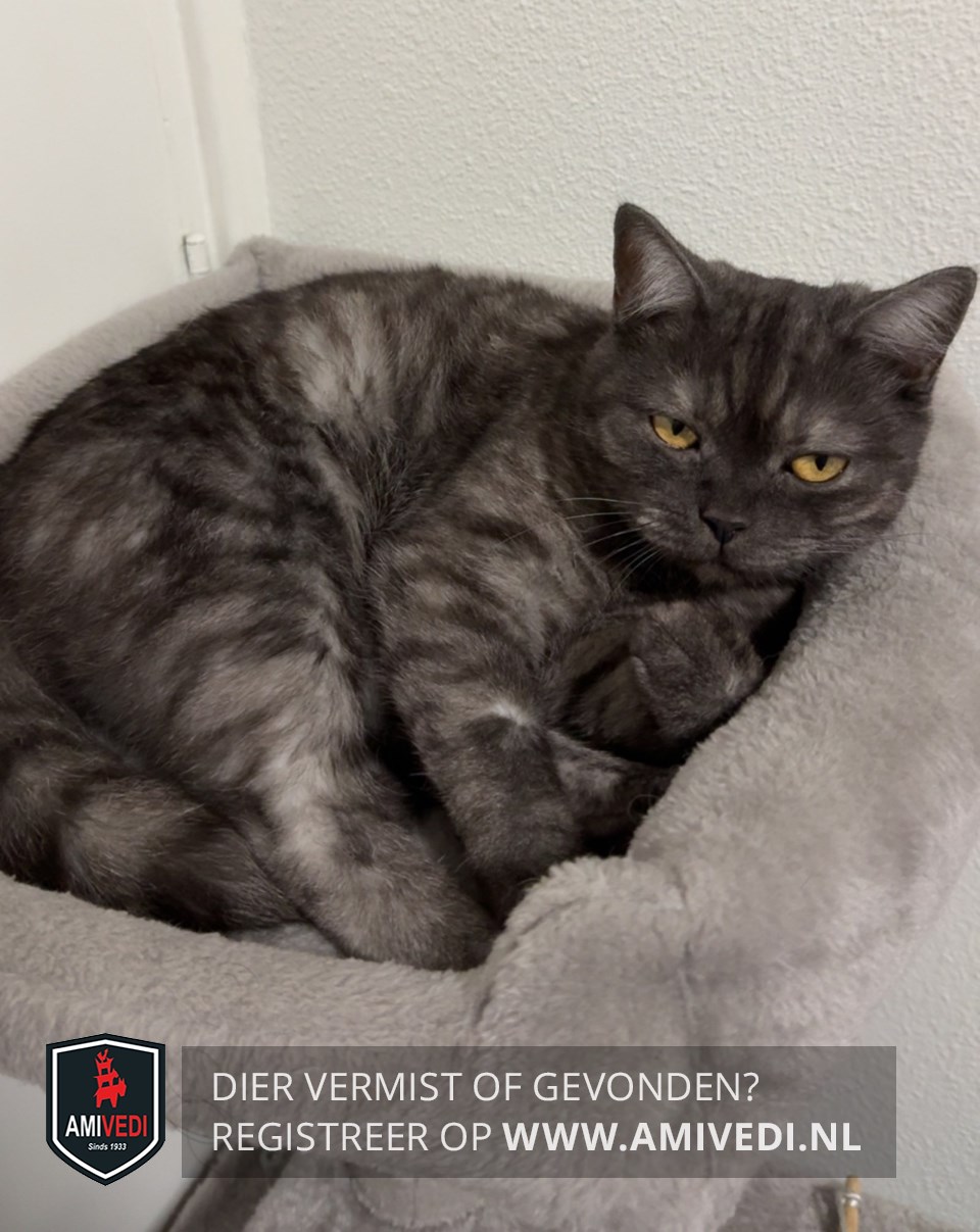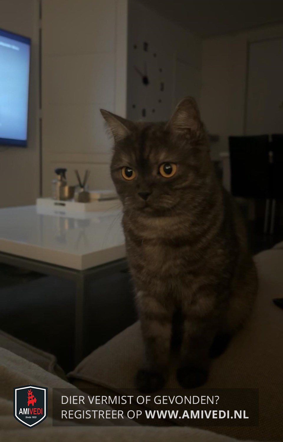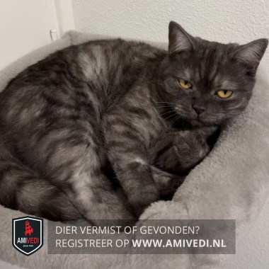 | Signalement | Smokey grey gestreepte vacht met wit/lichtgrijs. Lichtbruine ogen. |
