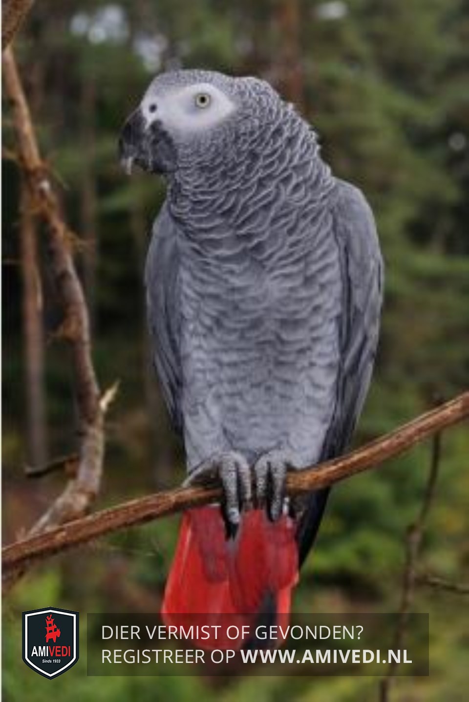 | Signalement | Grijs met rood, handzaam. |