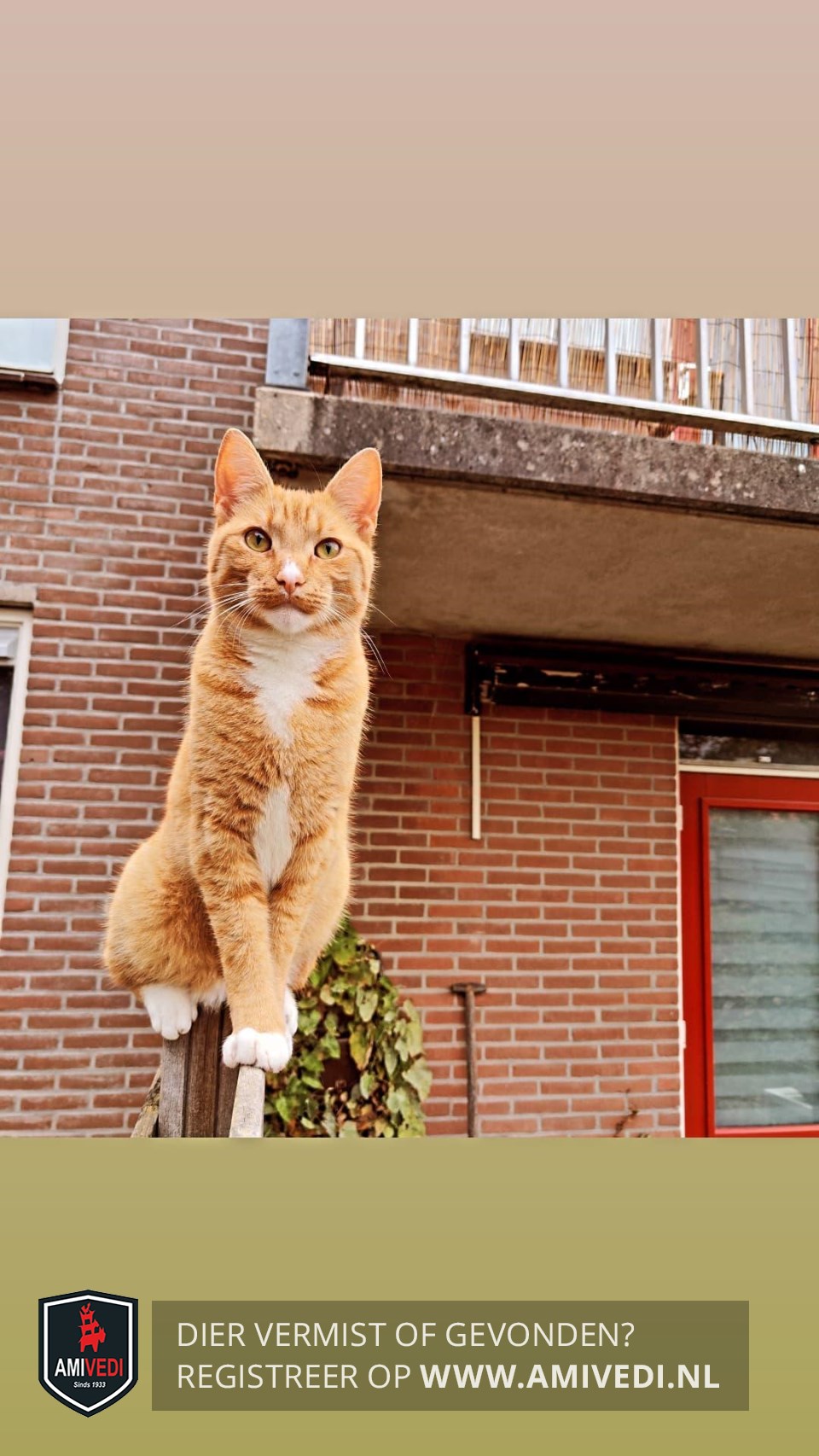 | Signalement | Rode kater met witte voetjes en een wit neusje en wit op zijn borstkast |