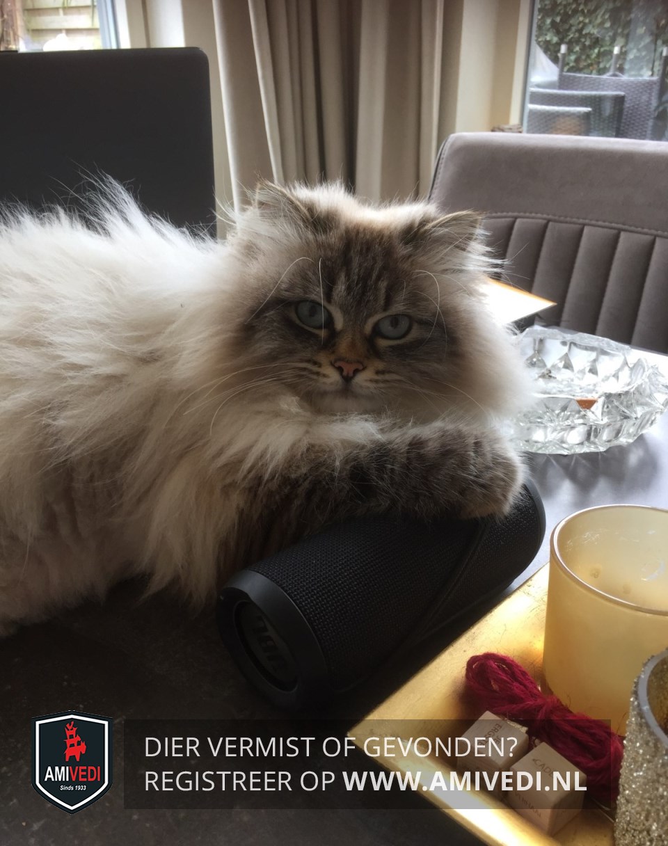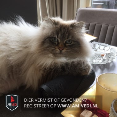 | Signalement | Voornamelijk grijs met zwart cyperse tekening op het kopje en de pootjes |