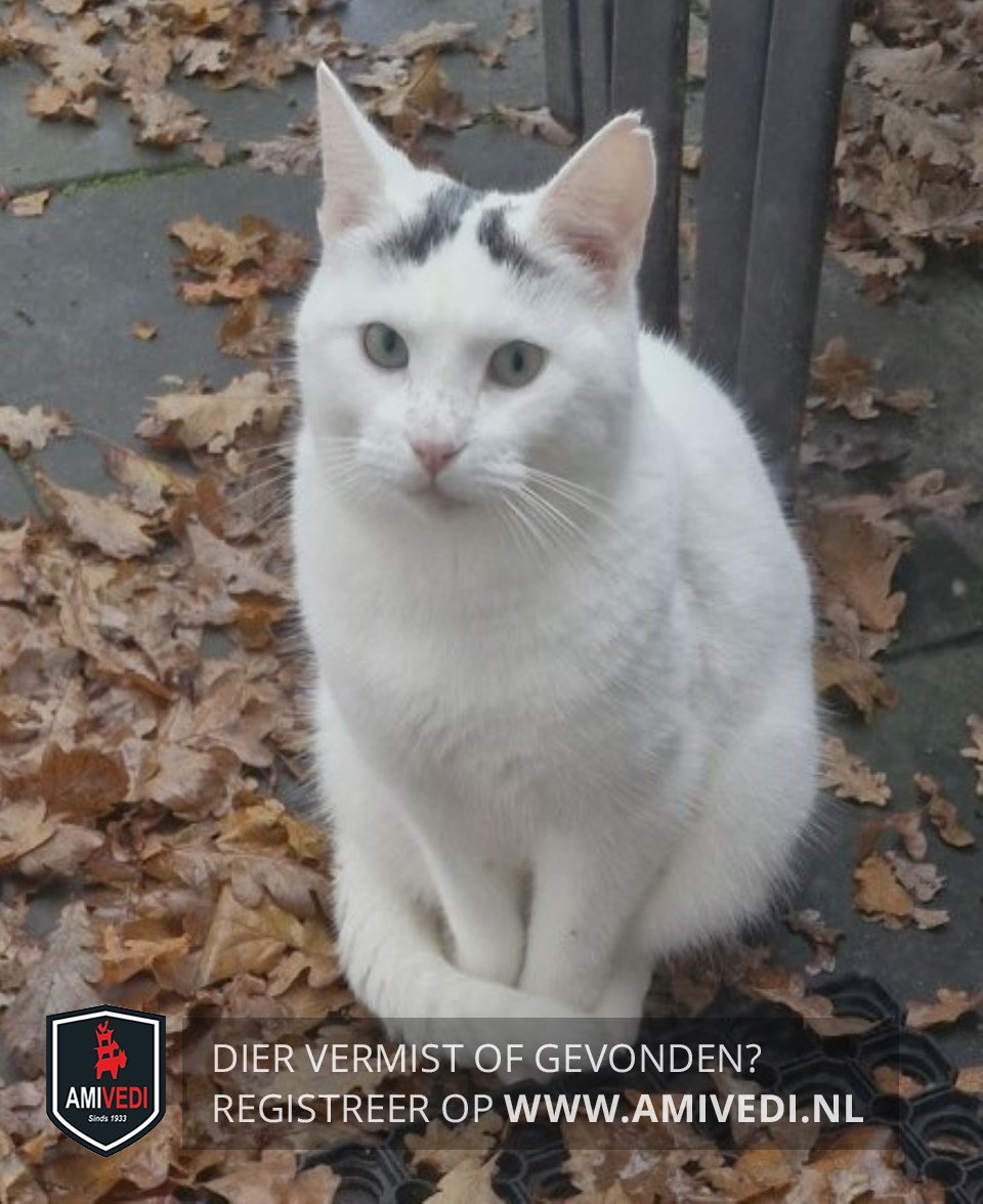 | Signalement | Geheel wit van kleur met op de kop zwarte vlekjes. |