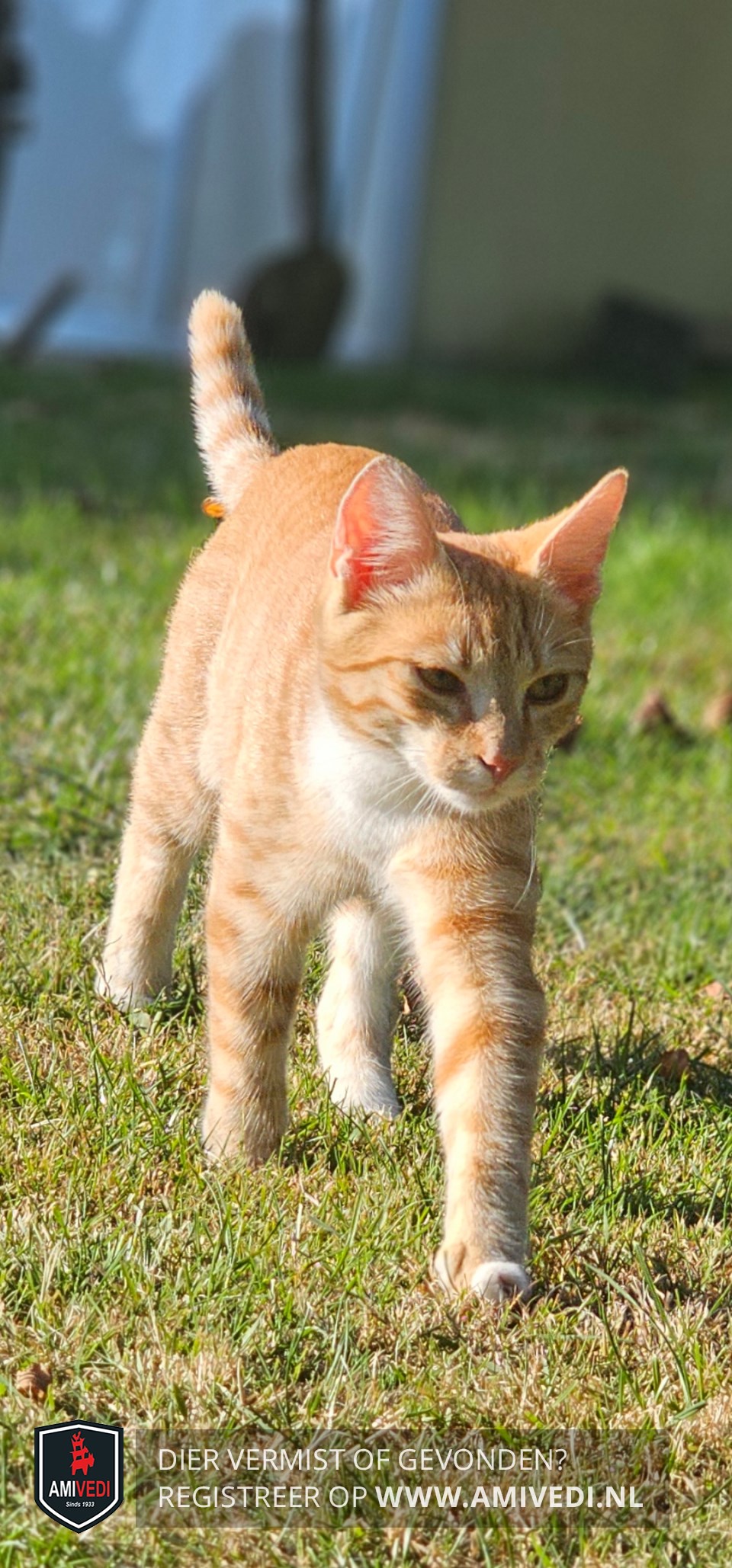 | Signalement | Cypers rood met witte bef/borst. Raffie heeft geen tenen aan zijn voorpootjes |