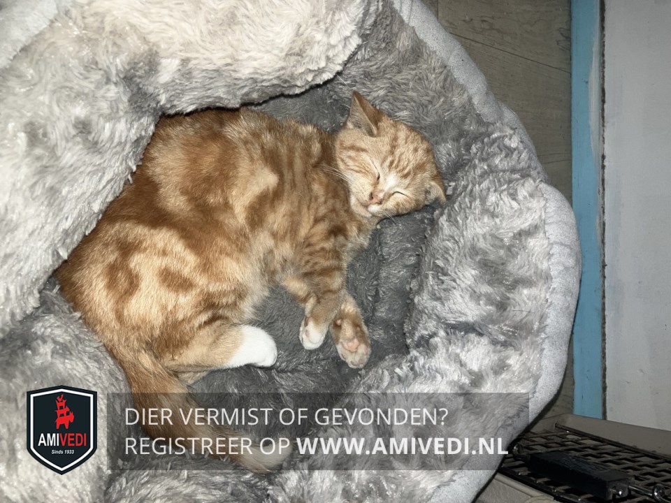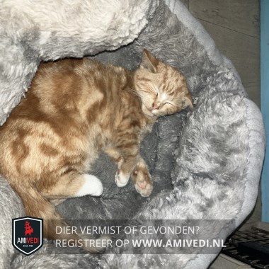 | Signalement | Rood/witte kitten Mankeert iets aan achterpoten en kan niet lopen. Mogelijk door een val? |