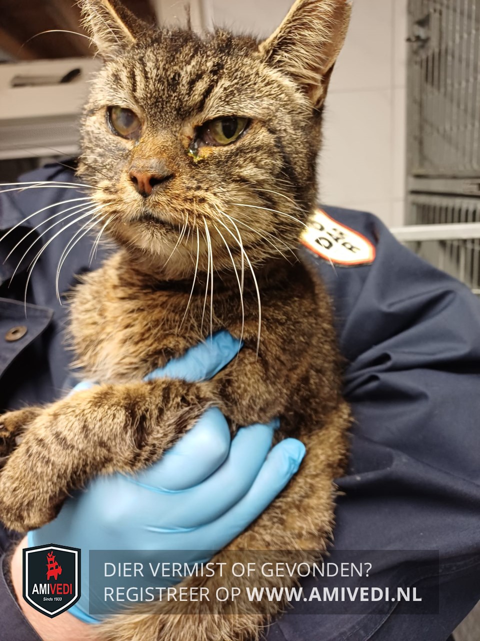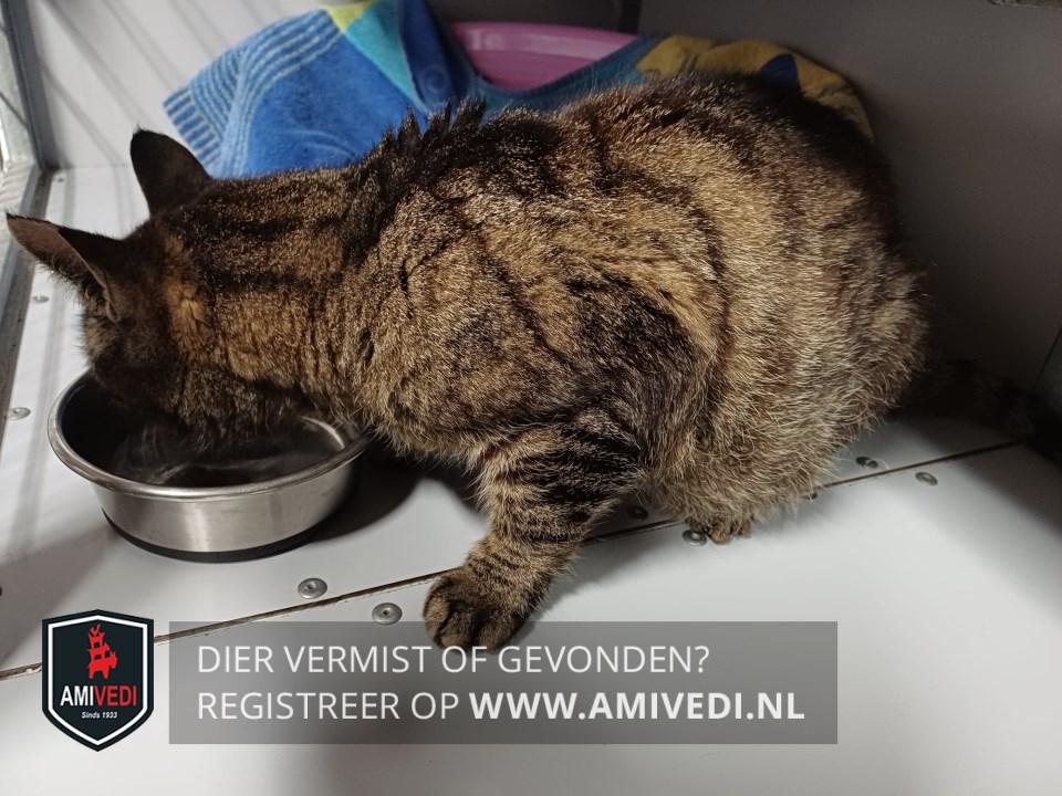 | Signalement | Bruinzwarte cyperse poes. Zwart petje. Wat lichter op de kin en de borst. |