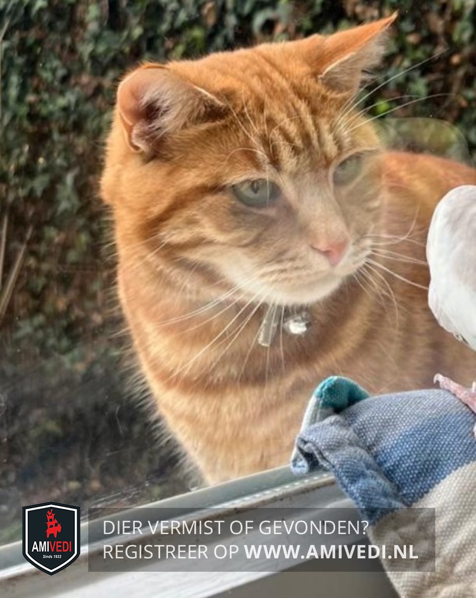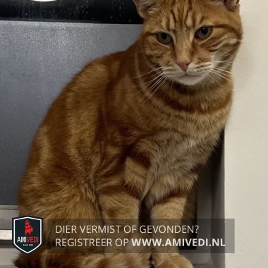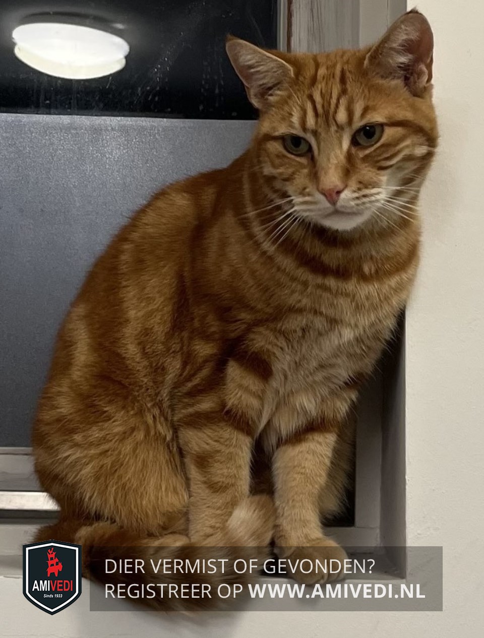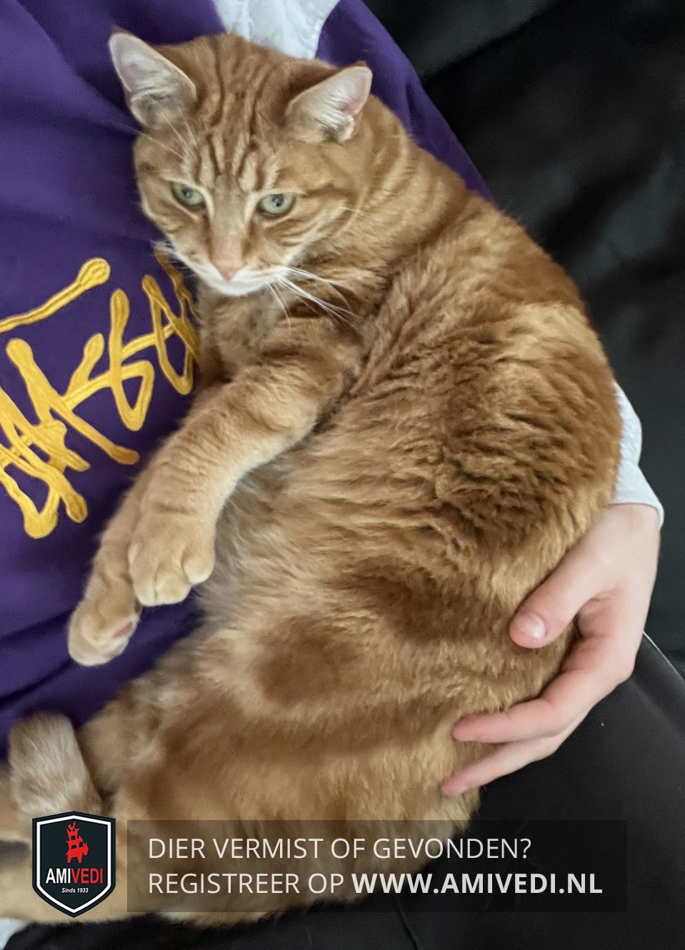 | Signalement | Cypers rood/oranje gestreept met een witte kin. Klein vetbultje bij het linkeroor |