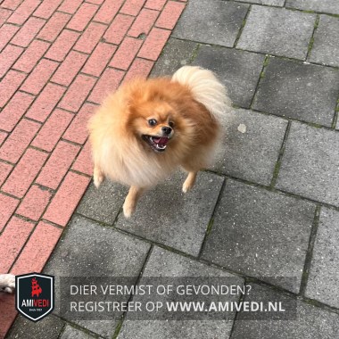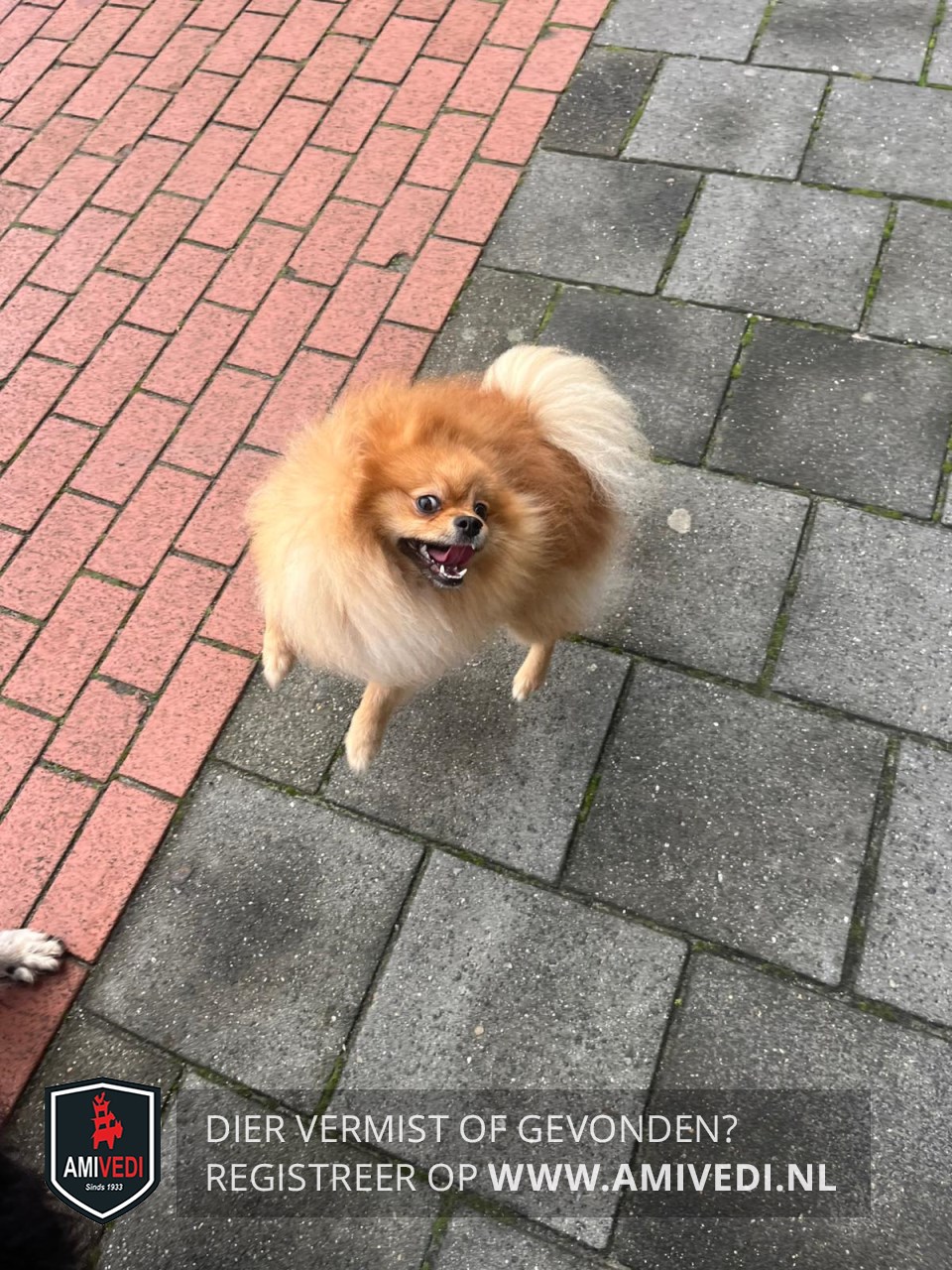 | Signalement | Abrikooskleurige Pomeriaan met beige/blonde bef en staart. |
