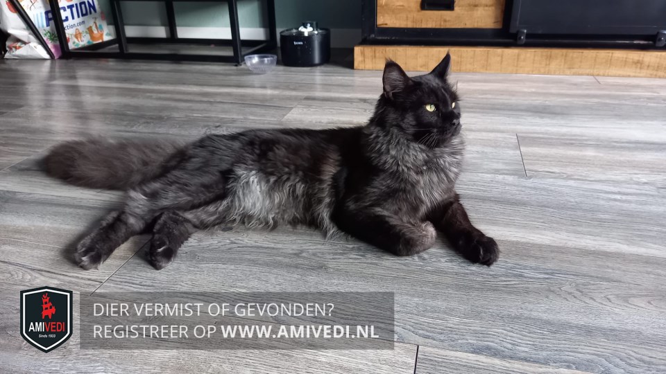 | Signalement | Simba heeft lang haar zwart met grijs en heeft licht grijs op zijn buik |