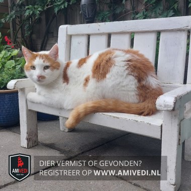 | Signalement | Grote maar slanke kat. Meerdere rode vlekken op de linkerflank. Eén doorlopende rode vlek op de rechterflank. Rood vlekje op de linkerlip. Staart volledig rood. Oren rood met witte randjes. Heeft bijna geen stem en kan alleen schor mauwen. Schrikkerig. |