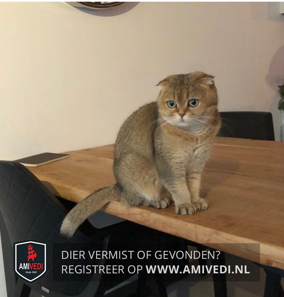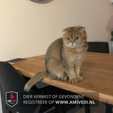 | Signalement | Beige/bruin, wit kinnetje en een beetje op de borst. |