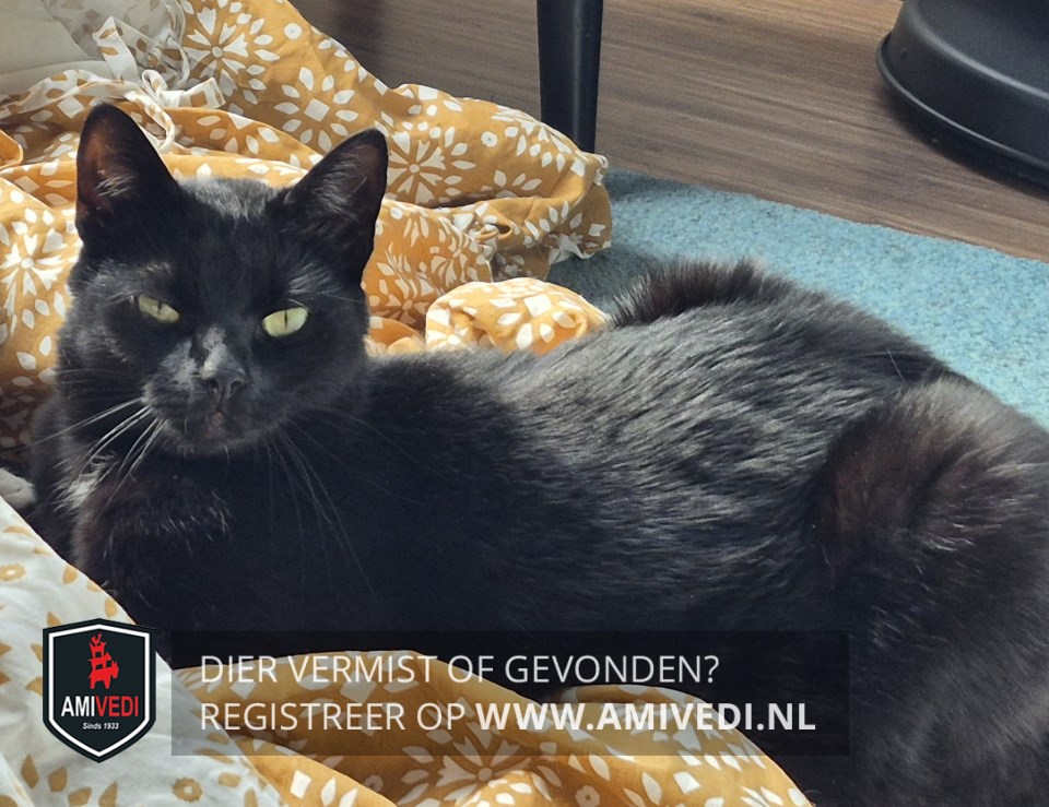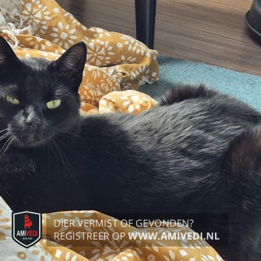 | Signalement | Zwart met wit befje. Groene ogen. |