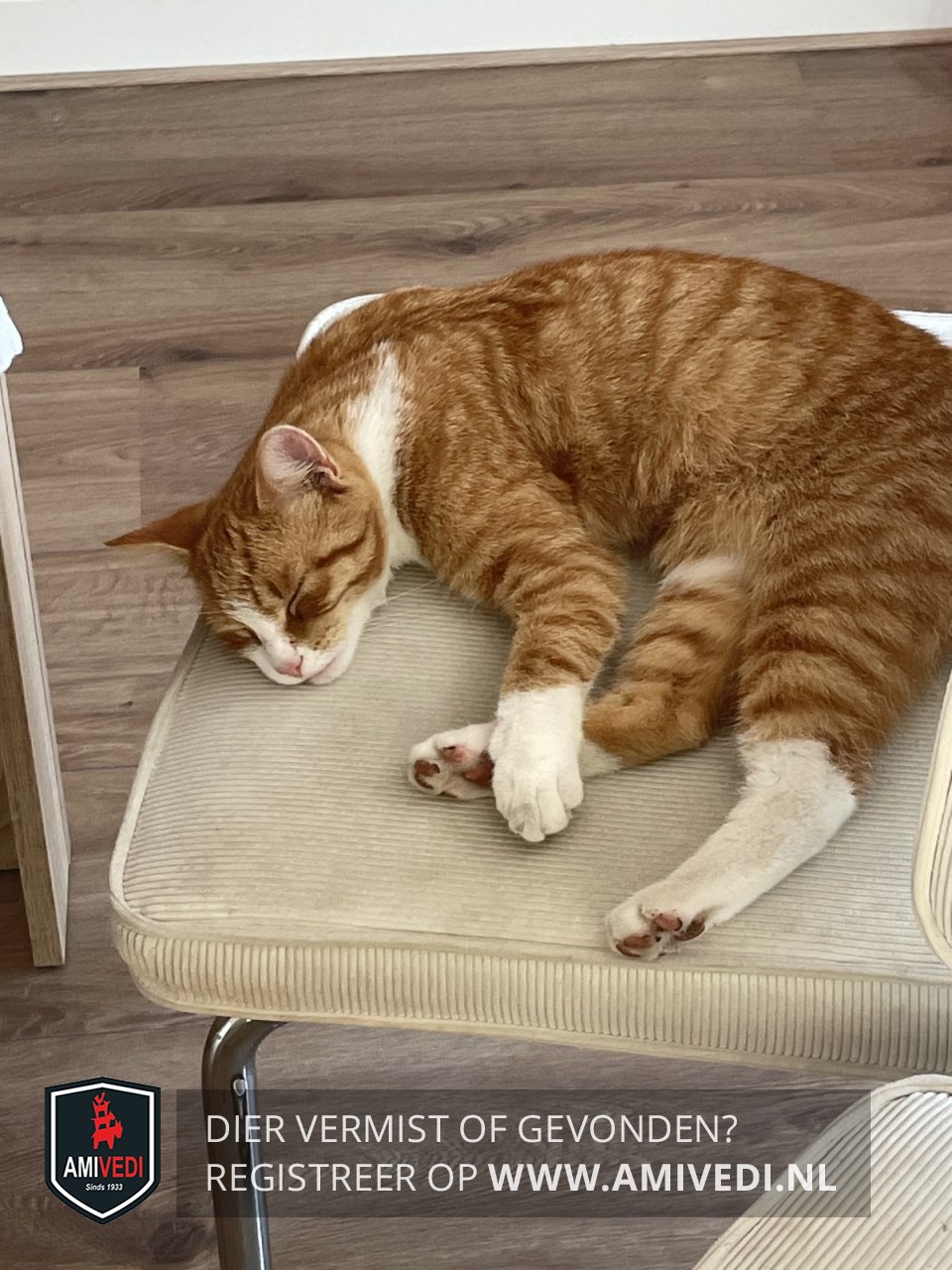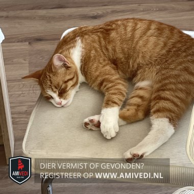 | Signalement | Cypers rode kop met donker rood onder de ogen, wit op de neusbrug, snuit, kin, bef, borst, cypers rood gestreept lijf, linker voor poot witte sok, linker achter poot witte kous, rechter achter poot heeft aan de binnen kant boven in een witte streep met een witte sok. |