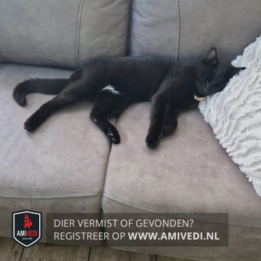 | Signalement | Geheel zwart, met op de onderbuik een wit vlekje. |