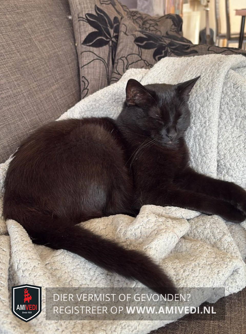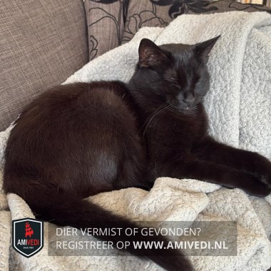 | Signalement | Geheel zwart, groene ogen. |