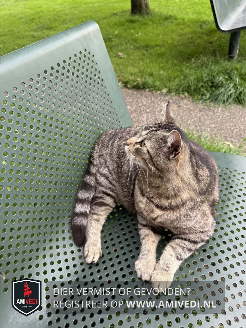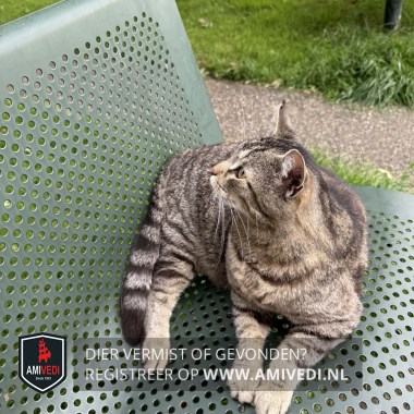 | Signalement | Cypers grijs/zwart gestreept,witte bek. |