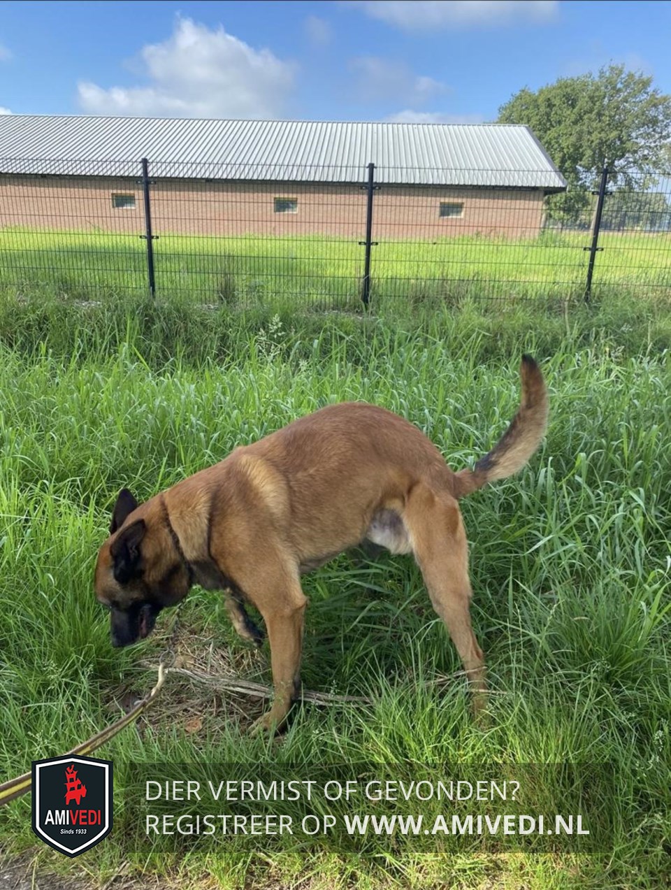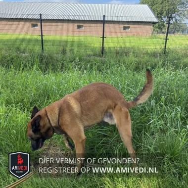 | Signalement | Hond heeft zwarte oren en een zwarte snuit. lijf bruin |