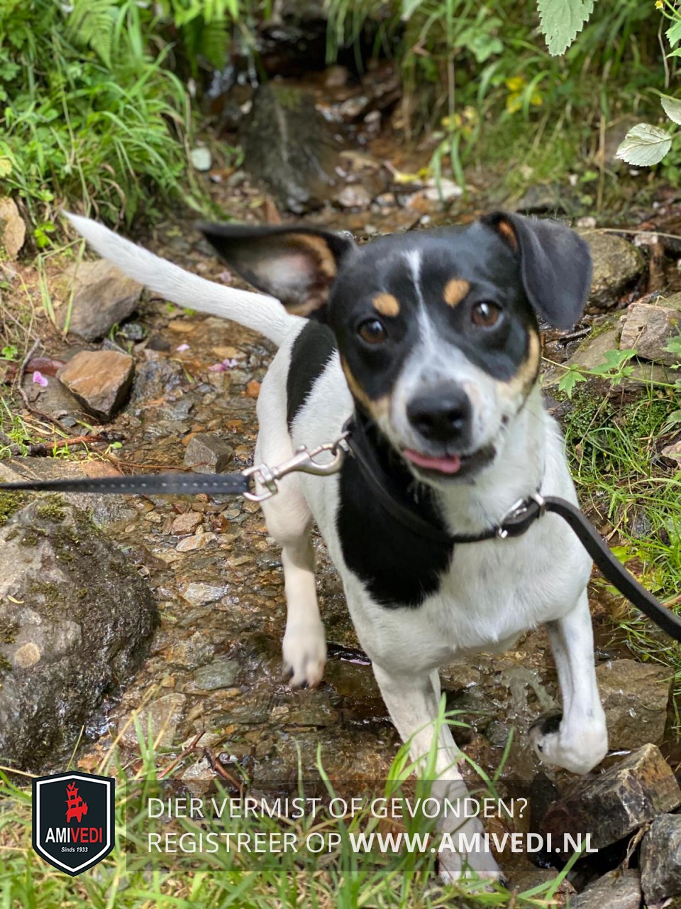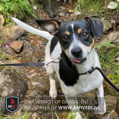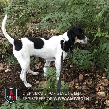 | Signalement | Wit met zwarte rond de ogen en op kopje, zwarte oren en zwarte vlekken op lijfje, bruine wenkbrauwen en wangen bruin vlekje op rechter achterpootje. |