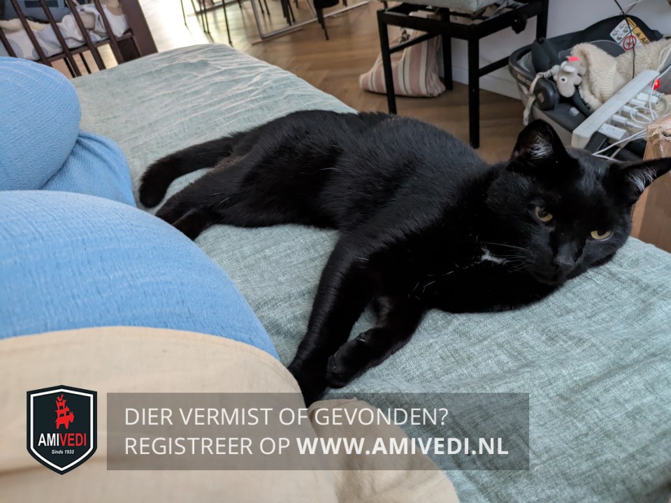 | Signalement | Slank postuur, geheel zwart, gele ogen. |