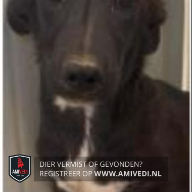 | Signalement | Teckel kruising 30 cm hoog. Zwart, witte borst. Spitse snuit, hangende oren. Schuw. |