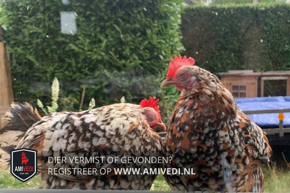 | Signalement | Sabelpoot krielkip, gemêleerd bruin met wit en iets zwart. Rode kam. |