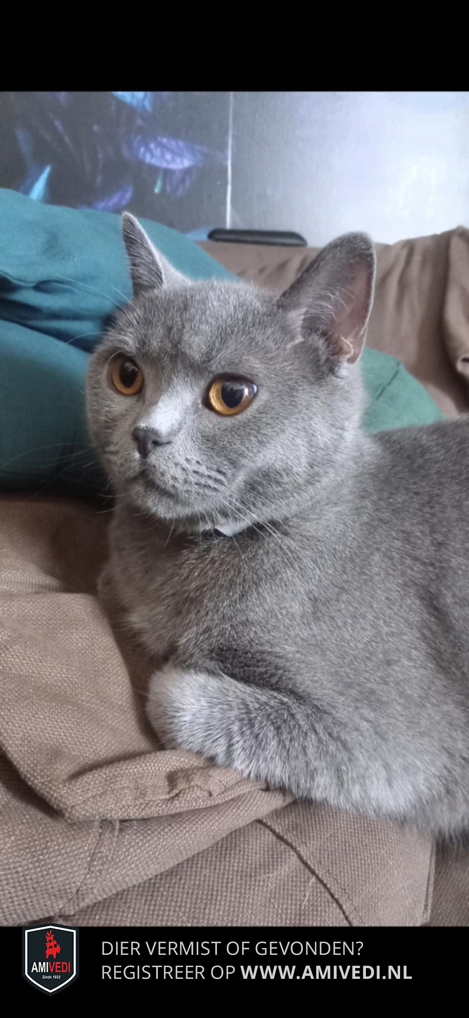| Signalement | Grote kat, flinke pouch. Gele ogen |