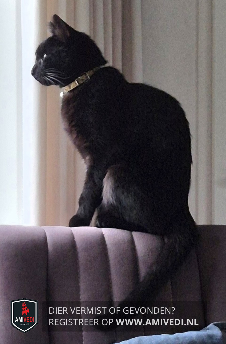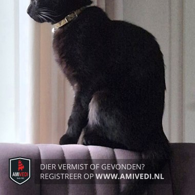 | Signalement | Egaal zwart. Op de linker voorpoot een kaal plekje wegens recente operatie. |