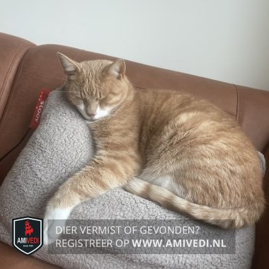 | Signalement | Cypers licht rood met wit. Witte snor. Witte kin en bef. Wit op de buik. Witte voetjes. Staart is duidelijk licht rood met wit geringd. |
