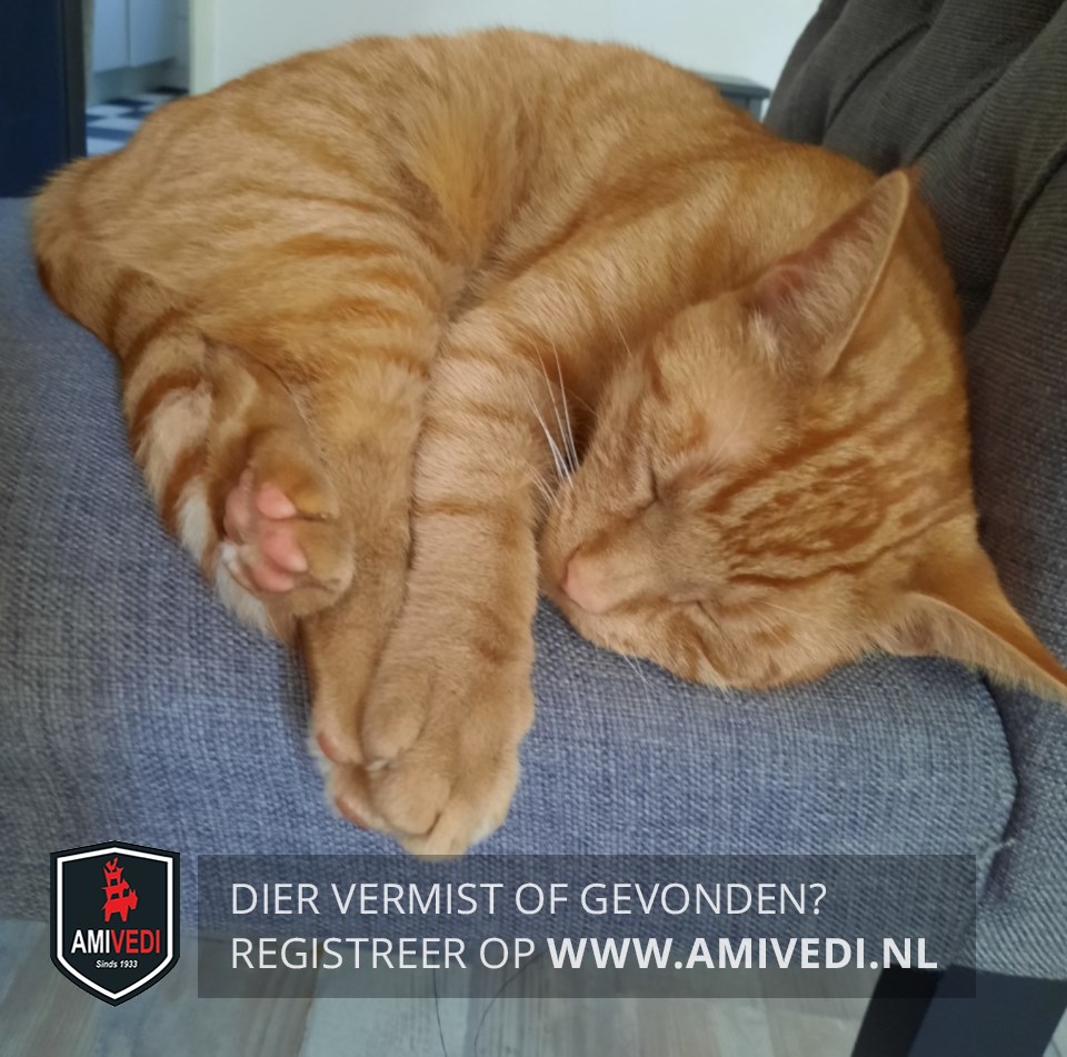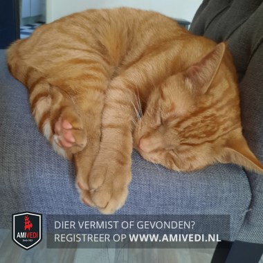 | Signalement | Geheel cypers rood gestreepte kater. Witte ringen op uiteinde staart. Schuw, lief |