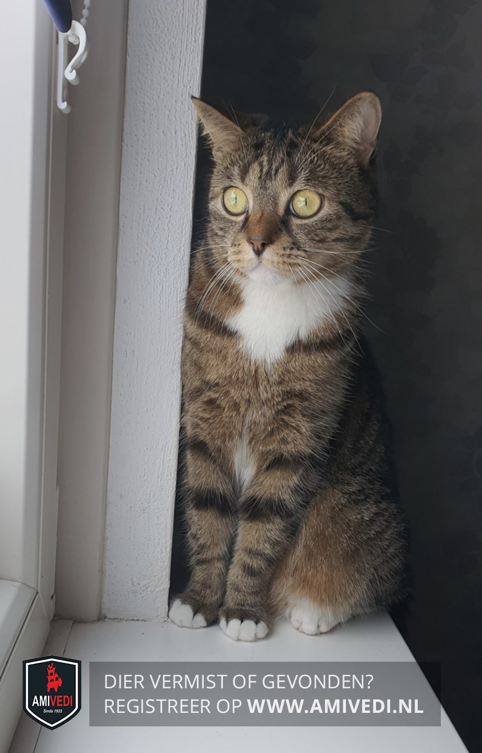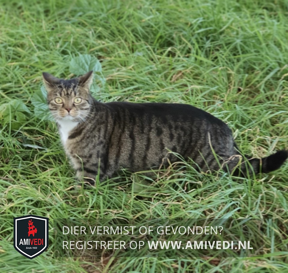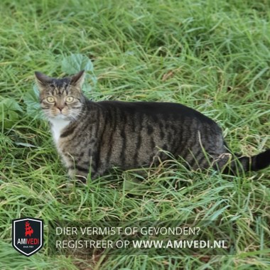 | Signalement | Cypers bruin/zwarte kater, bruin neusje, witte bef, wit vlekje op de buik. Voorpootjes witte teentjes, achterpootjes witte sokjes. Bovenin de voorpootjes twee donkere horizontale strepen. Zwarte staartpunt. |