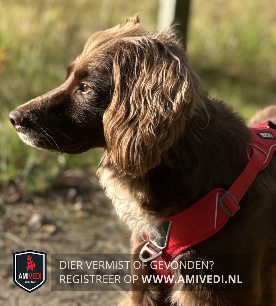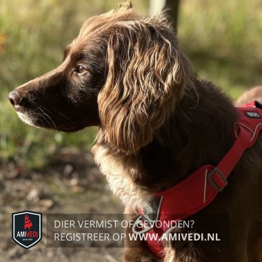 | Signalement | Kruising. Bruin met wit op de borst. |