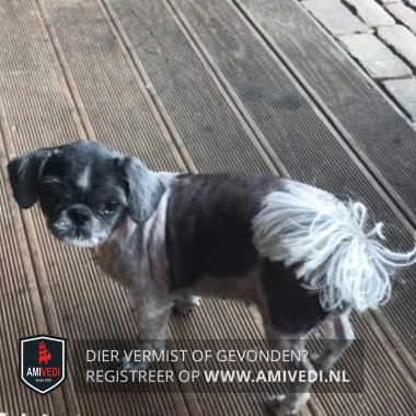 | Signalement | Zwarte kop,witte snor en bek,witte streep tussen de ogen,witte borst,witte voor en achterpoten.Zwart op de rug,witte staart. Eddy is slechthorend! |
