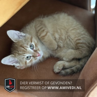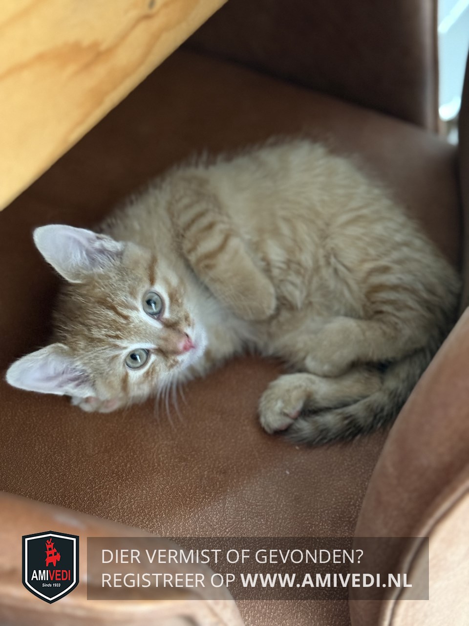| Signalement | Rood cypers gestreepte kater met wat wit rondom de bak en kin, witte randjes aan de oren verder helemaal rood/oranje, geen witte voetjes. |