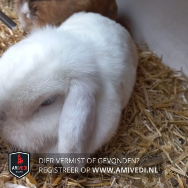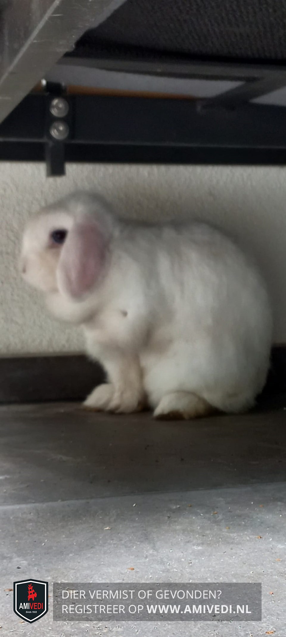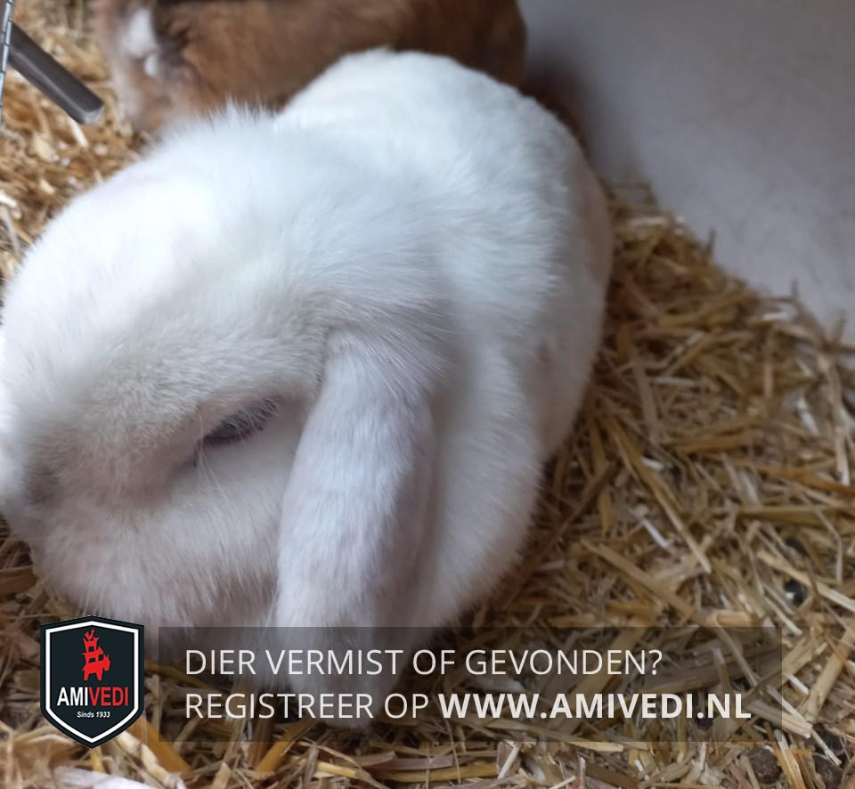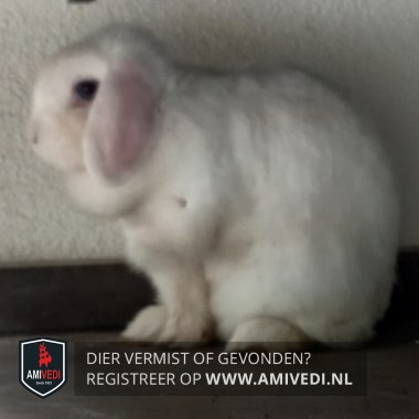 | Signalement | Wit, ze mist haar linker voorpootje. |