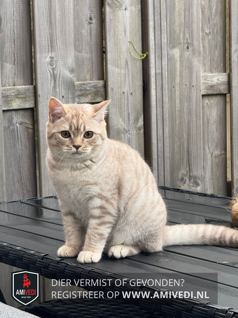 | Signalement | Beige wit cypers gestreepte Britse Korthaar. |