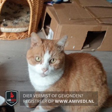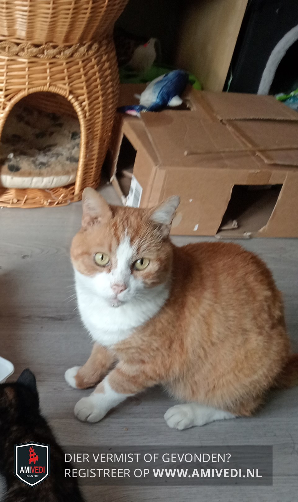 | Signalement | Rood cypers gestreepte kater met een witte bles, snuit en volle witte bef. Heeft een gestreept lijfje en aan de rechter voorpoot witte teentjes en aan de linker voorpoot een wit laarsje, witte laarsjes aan de achterpootjes. |
