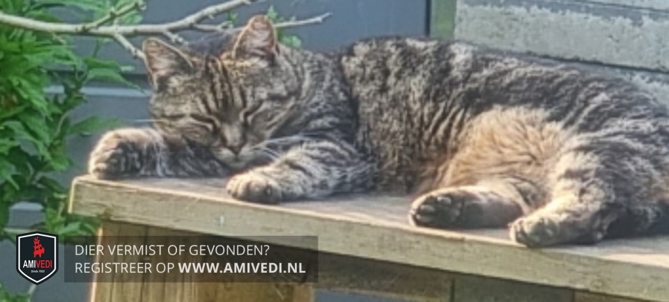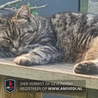 | Signalement | Cypers grijs gestreept, met wit erdoor heen, beige gloed op de buik. |