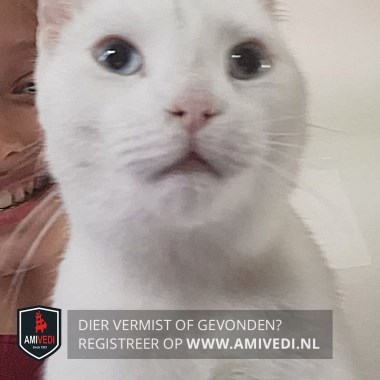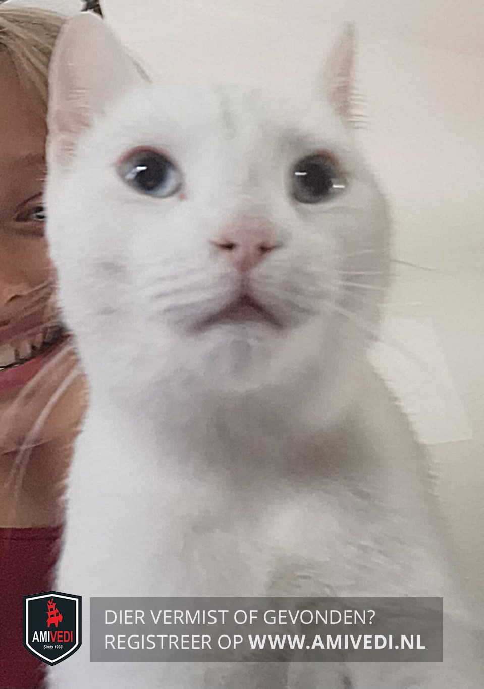 | Signalement | Geheel witte kat met blauwe ogen. Doof |