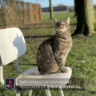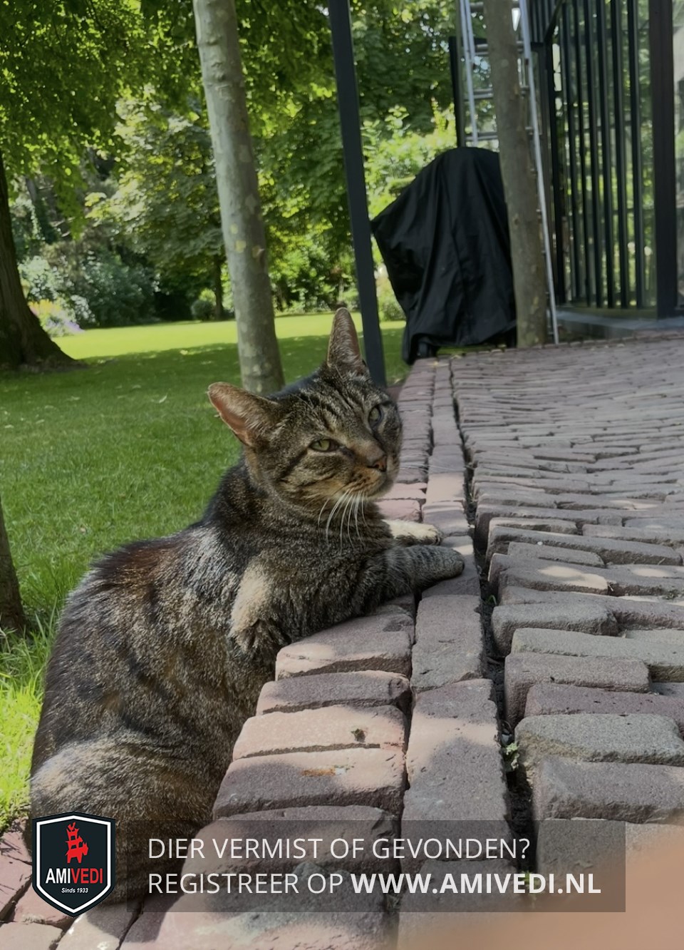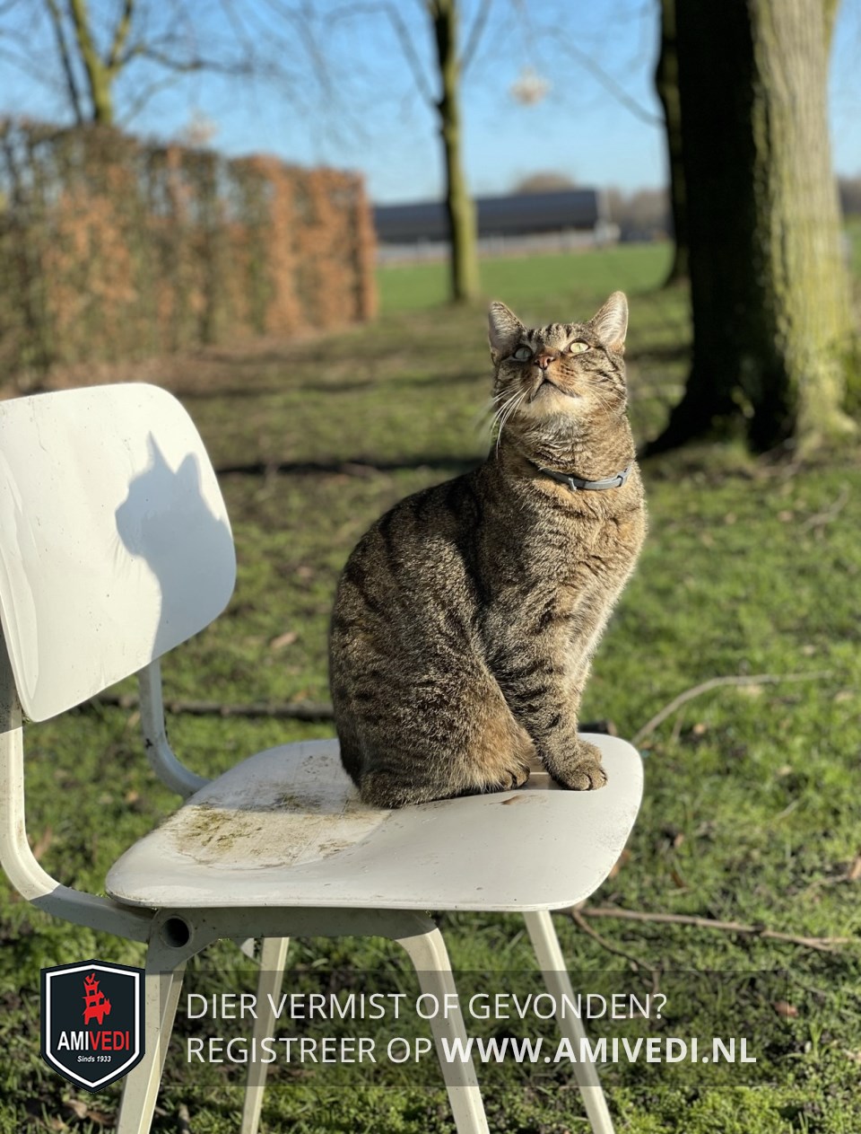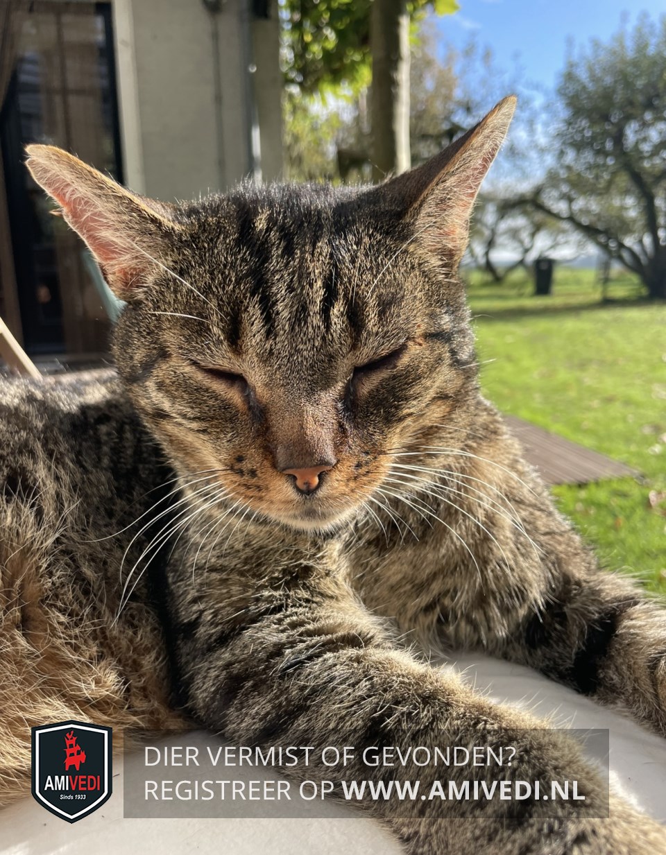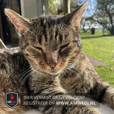 | Signalement | Gestreepte kater met grijze vlooienband |